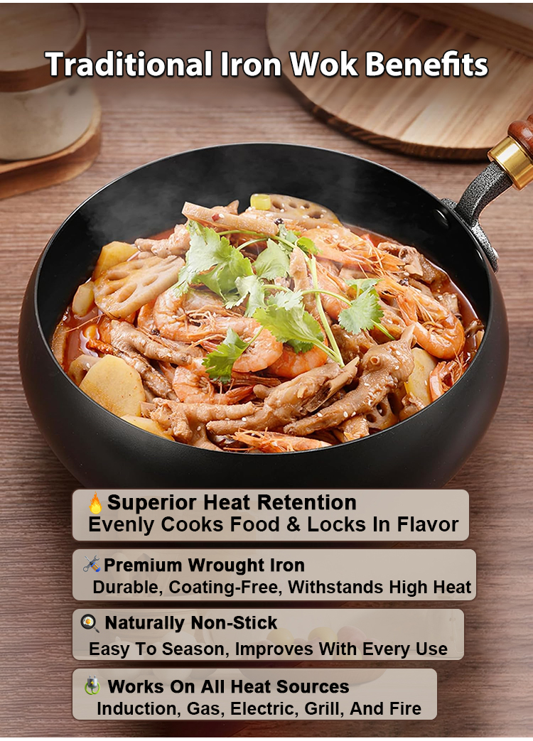 [100th Anniversary Flash Sale]Tsubame-Sanjo Masterpiece: Hand-Hammered Japanese Wok - 100% Toxin-Free & Natural Non-Stick 🇯🇵🍳80% OFF Artisan Iron Wok + FREE Rosewood Spatula & Lid 🎁📉